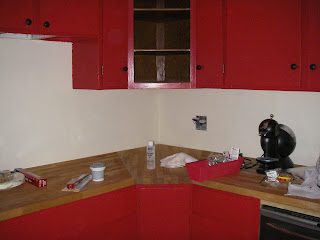 Our kitchen is basically done. We have a few bits and bobs to do...a bit of trim, a tile backsplash, hardware on the drawers...but it's functional and it is really cute. I love it!